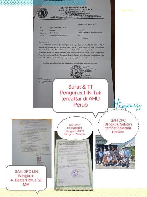 Beredarnya surat pelaporan yang mengatasnamakan DPD LIN Bengkulu, namun dengan tandatangan yang mencurigakan, telah menimbulkan keresahan di kalangan pengurus dan masyarakat. “Kami sangat menyayangkan adanya pihak yang berupaya memanfaatkan nama besar LIN untuk kepentingan pribadi. Kami tegaskan bahwa hanya A. Bastari Idrus yang sah menjabat sebagai Ketua DPD LIN Bengkulu,” ujar Wiratmoko dalam pernyataannya.