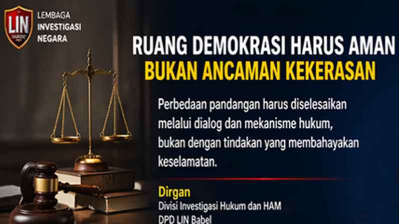 Ketua DPD LIN Babel, Ahmad Bustani, menegaskan bahwa tindakan kekerasan tersebut merupakan ancaman serius terhadap kebebasan berpendapat serta nilai-nilai demokrasi di Indonesia.