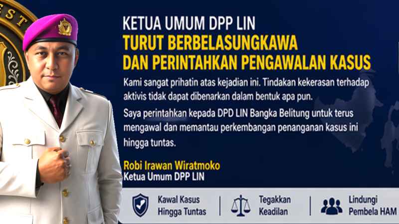 “Kami sangat prihatin atas kejadian ini. Saya perintahkan kepada DPD LIN Bangka Belitung untuk terus mengawal dan memantau perkembangan penanganan kasus ini hingga tuntas,” tegasnya.