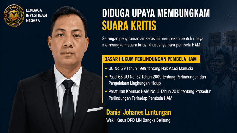 Wakil Ketua DPD LIN, Daniel Johanes Luntungan, menilai serangan tersebut sebagai bentuk upaya membungkam suara kritis, khususnya para pembela Hak Asasi Manusia (HAM).