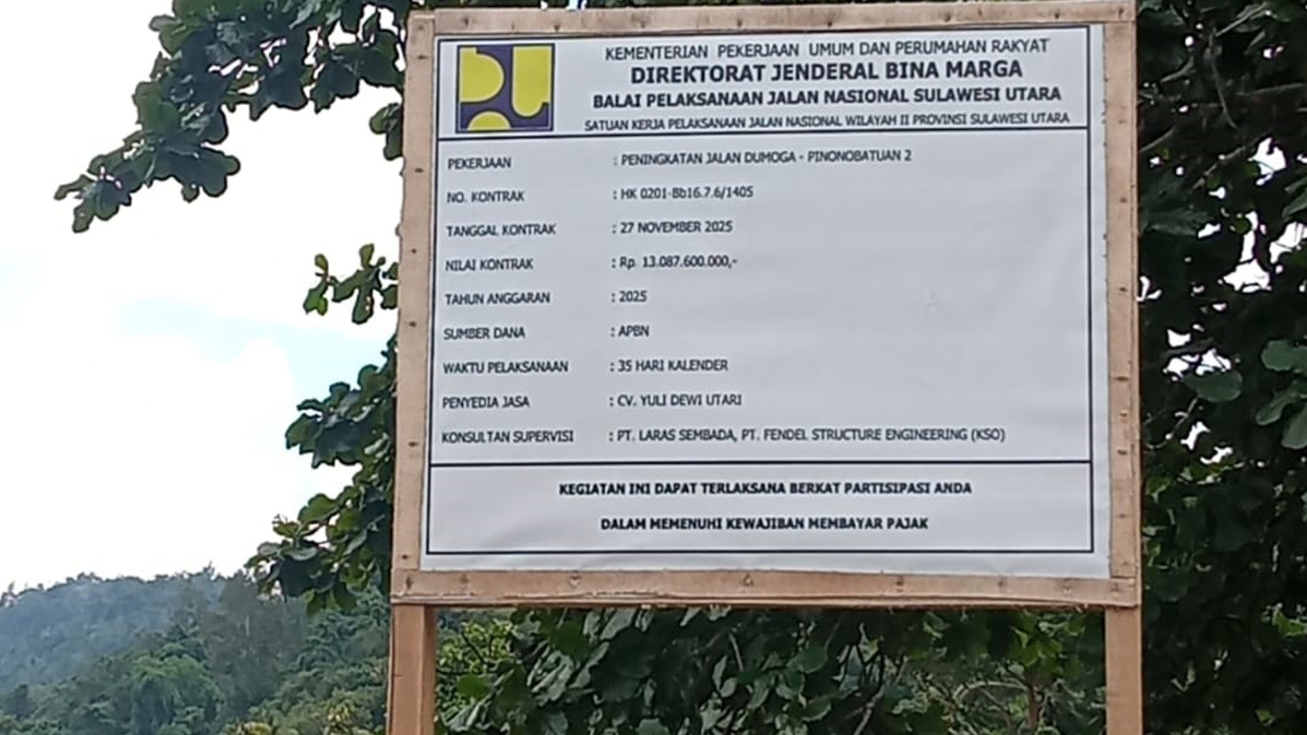 Manado — Lembaga Swadaya Masyarakat Independen Nasionalis Anti Korupsi (LSM INAKOR) menyoroti keterlambatan pelaksanaan proyek Peningkatan Jalan Dumoga–Pinonobatuan 2 yang berada di bawah Balai Pelaksanaan Jalan Nasional Sulawesi Utara, Direktorat Jenderal Bina Marga, Kementerian PUPR.