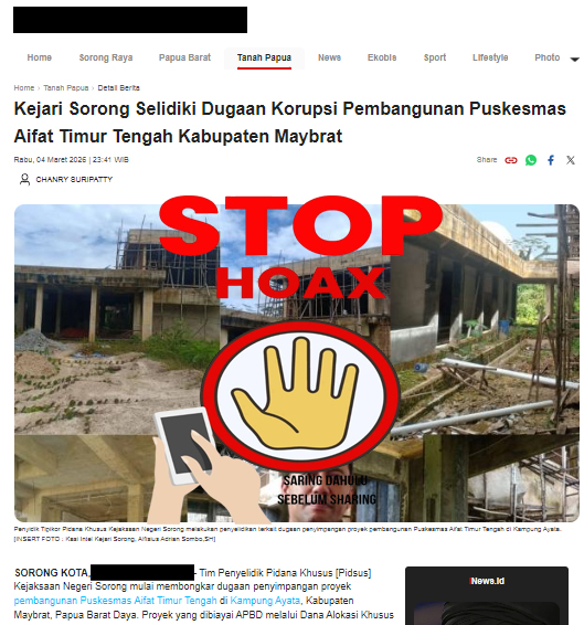 Sorong – Ketua Umum Lembaga Investigasi Negara, Robi Irawan Wiratmoko, memberikan klarifikasi terkait pemberitaan mengenai dugaan penyimpangan proyek pembangunan Puskesmas Aifat Timur Tengah, Kabupaten Maybrat, yang saat ini disebut sedang diselidiki oleh Kejaksaan Negeri Sorong.