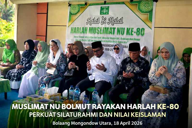 Bolaang Mongondow Utara, 18 April 2026 — Muslimat Nahdlatul Ulama (NU) Kabupaten Bolaang Mongondow Utara sukses melaksanakan perayaan Hari Lahir (Harlah) ke-80 yang dirangkaikan dengan kegiatan Halal Bihalal. Kegiatan ini dikemas dalam wadah silaturahmi Muslimat NU dan dilaksanakan di penghujung Syawal 1447 Hijriah.