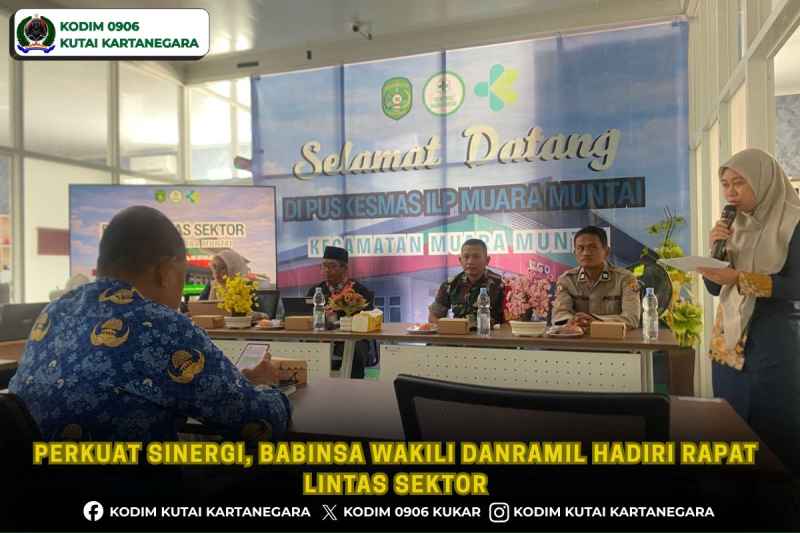Kutai Kartanegara. lembagainvestigasinegara.com– Dalam rangka memperkuat sinergi dan koordinasi antarinstansi, anggota Babinsa Koramil 0906-10/Muara Muntai Sertu Munir mewakili Danramil menghadiri kegiatan Rapat Lintas Sektor yang digelar diruang pertemuan Puskesmas Desa Muara Muntai Ilir kecamatan Muara Muntai dimana rapat lintas sektor tersebut dihadiri oleh unsur pemerintahan dan pemangku kepentingan di tingkat kecamatan, Jumat 24/6/26.