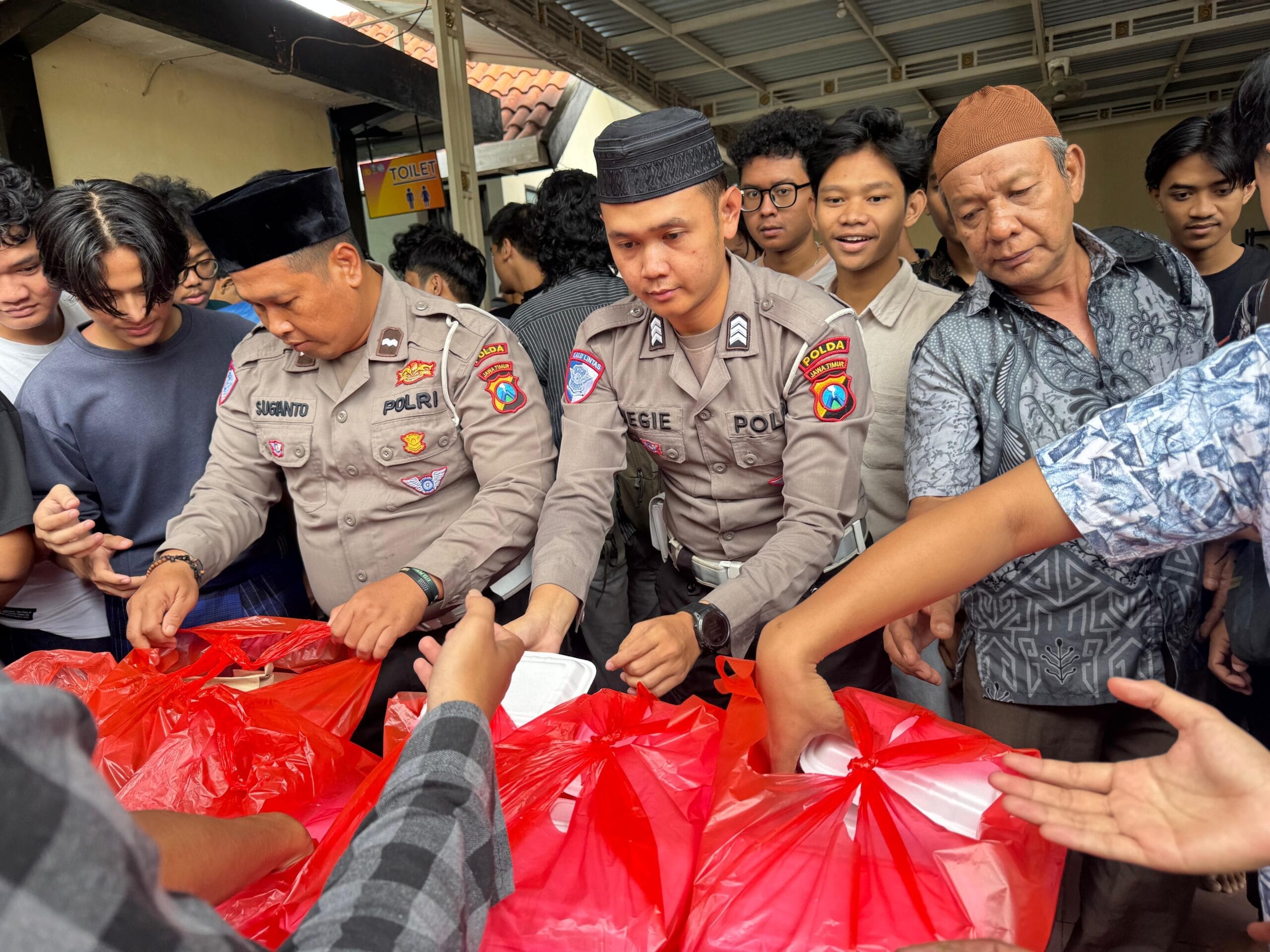 Kehadiran jajaran Samsat Surabaya Selatan Polda Jatim ini disambut hangat oleh umat Islam dalam berbagi nasi bungkus kepada Bapak dan anak-anak.
