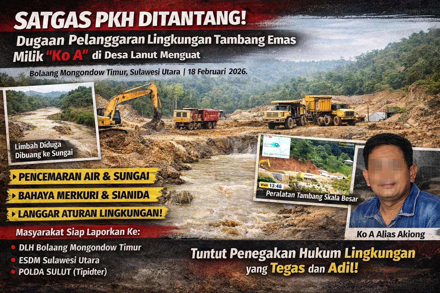 Warga juga mendesak agar Satgas PKH serta instansi terkait segera turun melakukan investigasi dan audit lingkungan secara menyeluruh.