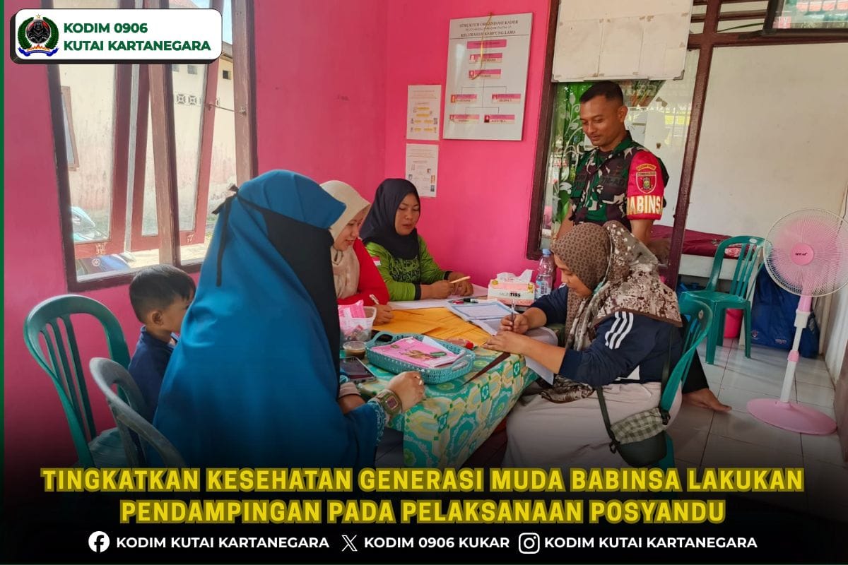 Kutai Kartanegara. lembagainvestigasinegara.com- Bentuk kepedulian terhadap kesehatan pada balita anggota Babinsa Koramil 0906-06/Samboja Sertu Andrian selalu aktif dalam melakukan pendampingan kegiatan Posyandu Mawar Putih yang berada di Kelurahan Kampung Lama Kecamatan Samboja, Sabtu 28/2/26.